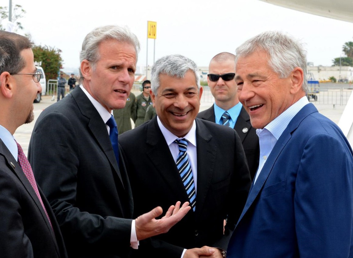 עוד בטרם נחת מטוסו בישראל, ביום א' 21.4, אמר שר ההגנה האמריקני צ'אק הייגל לכתבים במטוסו, כי עסקת הנשק הגדולה המתרקמת בין ארה''ב וישראל, שולחת מסר ברור מאוד לטהרן כי פעולה צבאית נשארת אופציה כדי לעצור מבעדה להפוך גרעינית. ציטוט המקור:
