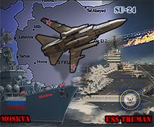 נוב 25, 2015 @ 7:49 roi wolf 39230 Views באראק אובמה, בשאר אסד, ולדימיר פוטין, טאייפ ארדואן, נושאת המטוסים האמריקנית 'טרומן', נושאת המטוסים הצרפתית 'שארל דה גול', סיירת הטילים 'מוסקווה'